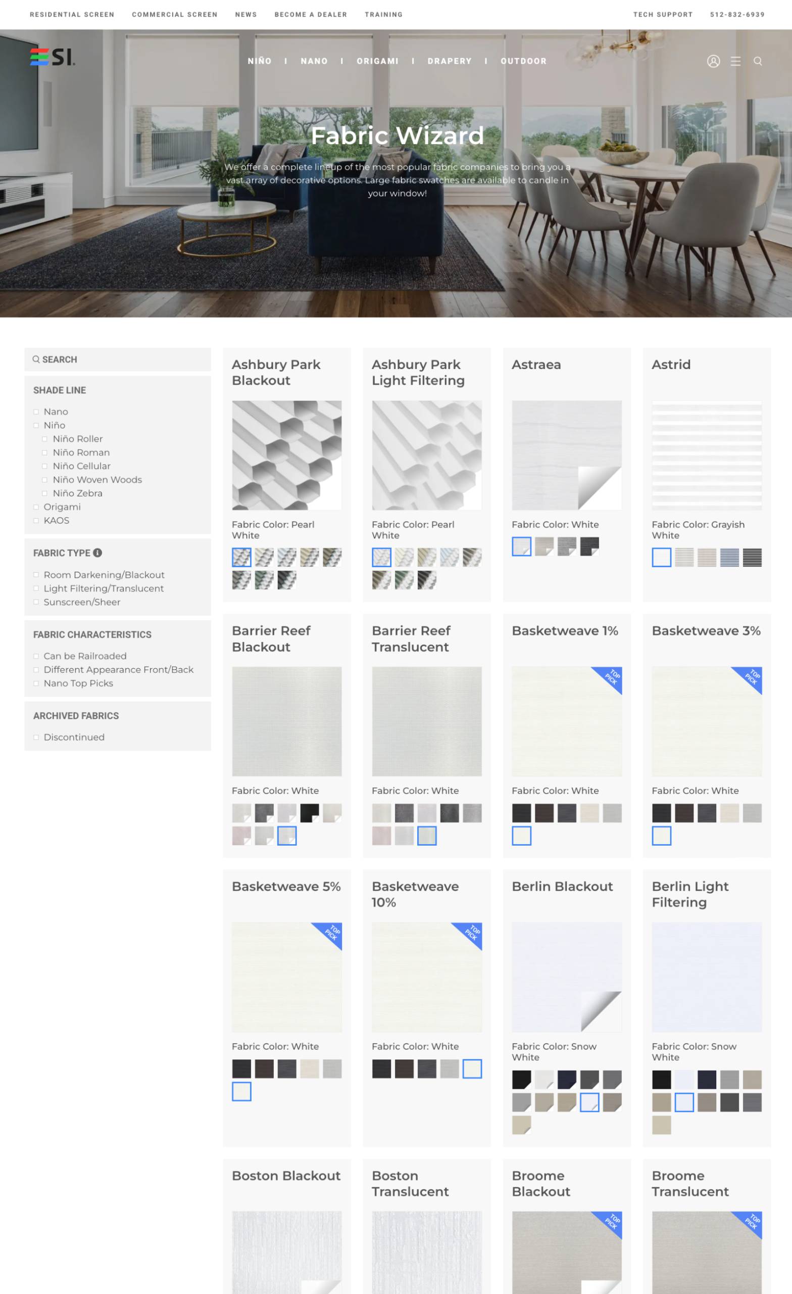 The Fabric Wizard is a custom-built tool designed to help both sales teams and customers quickly explore and compare available fabric options. Users can filter fabrics by shade type and fabric style, with real-time visual swatch previews integrated directly into the browsing experience.